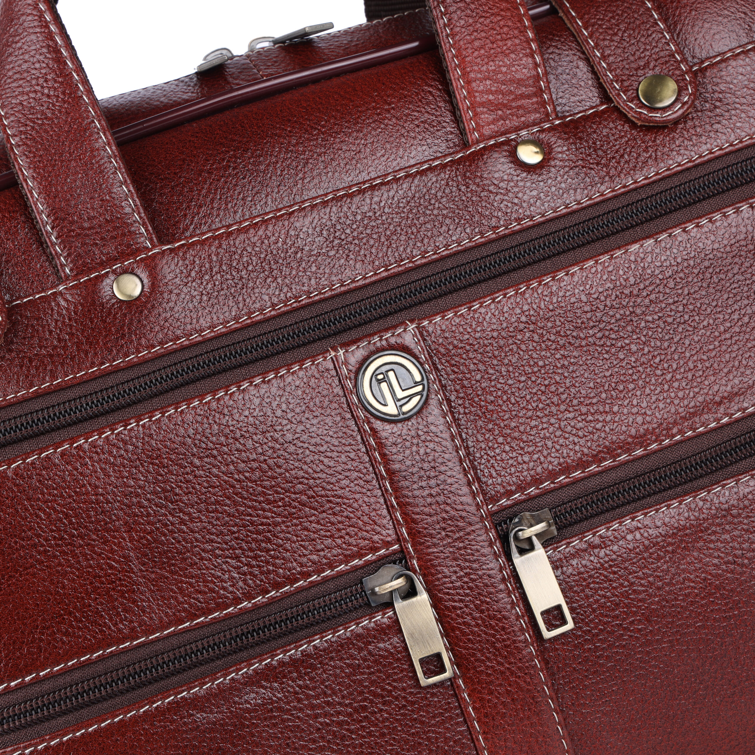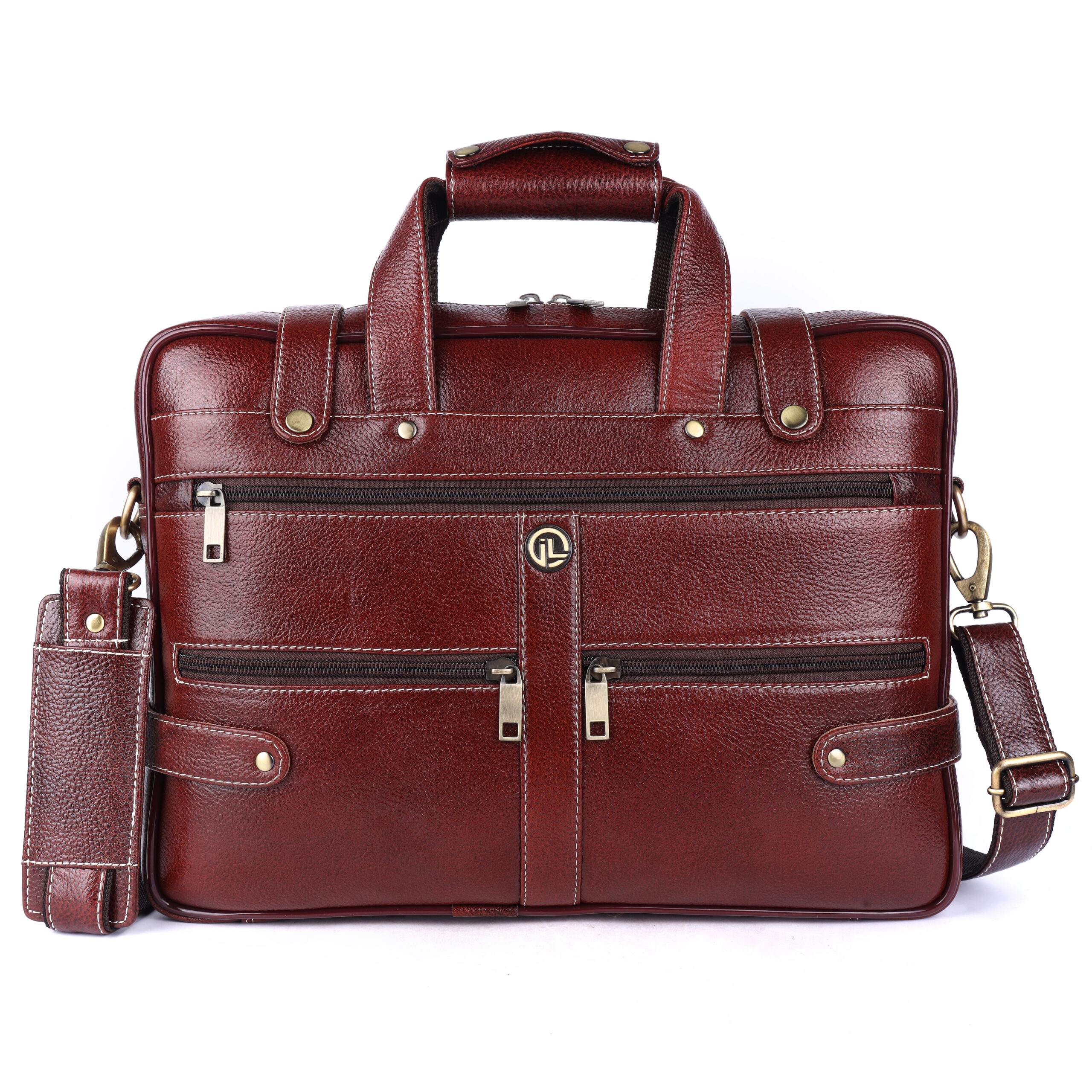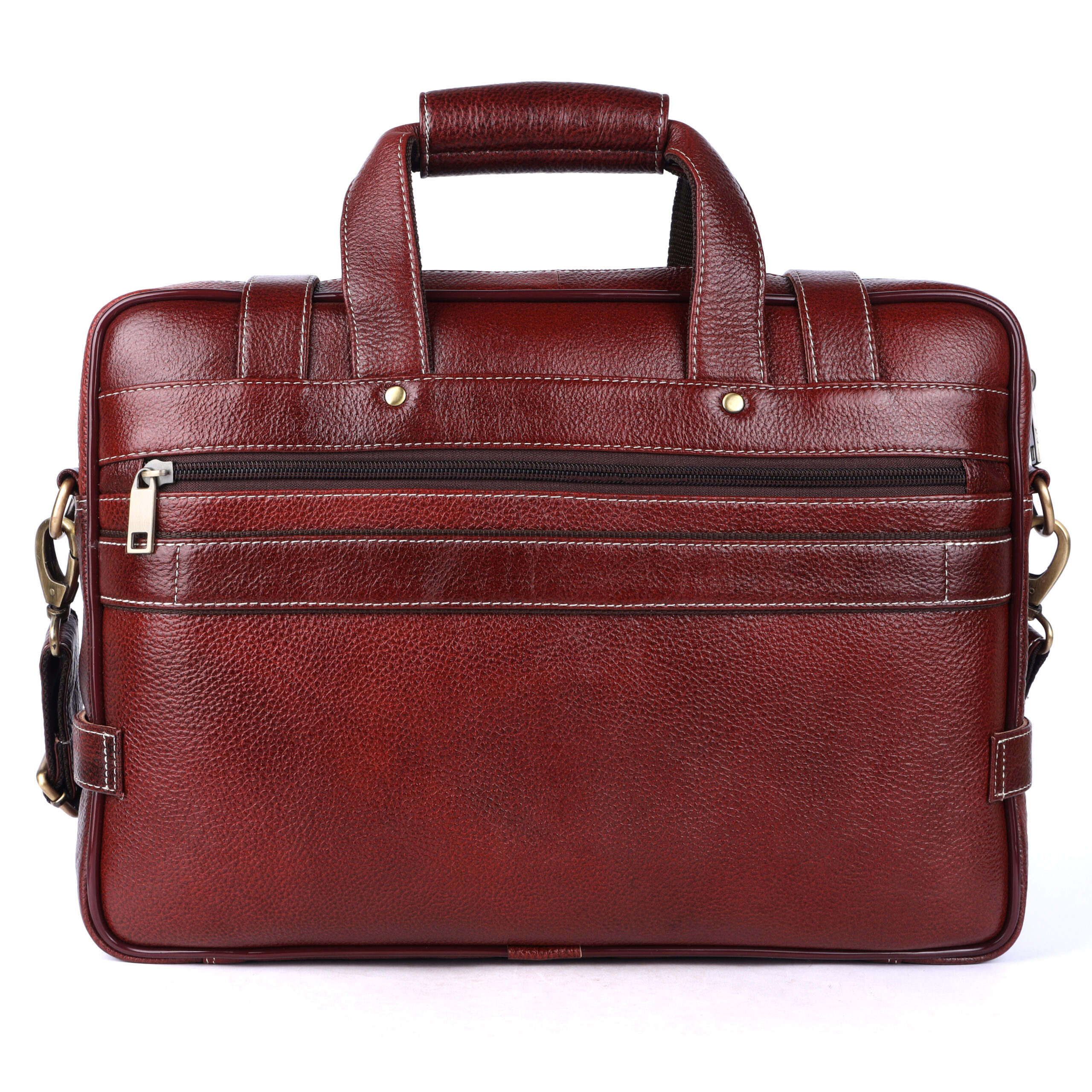 Premium Detailing: Finished with sharp contrast white stitching and robust, polished brass-tone hardware, providing a look of enduring executive quality.