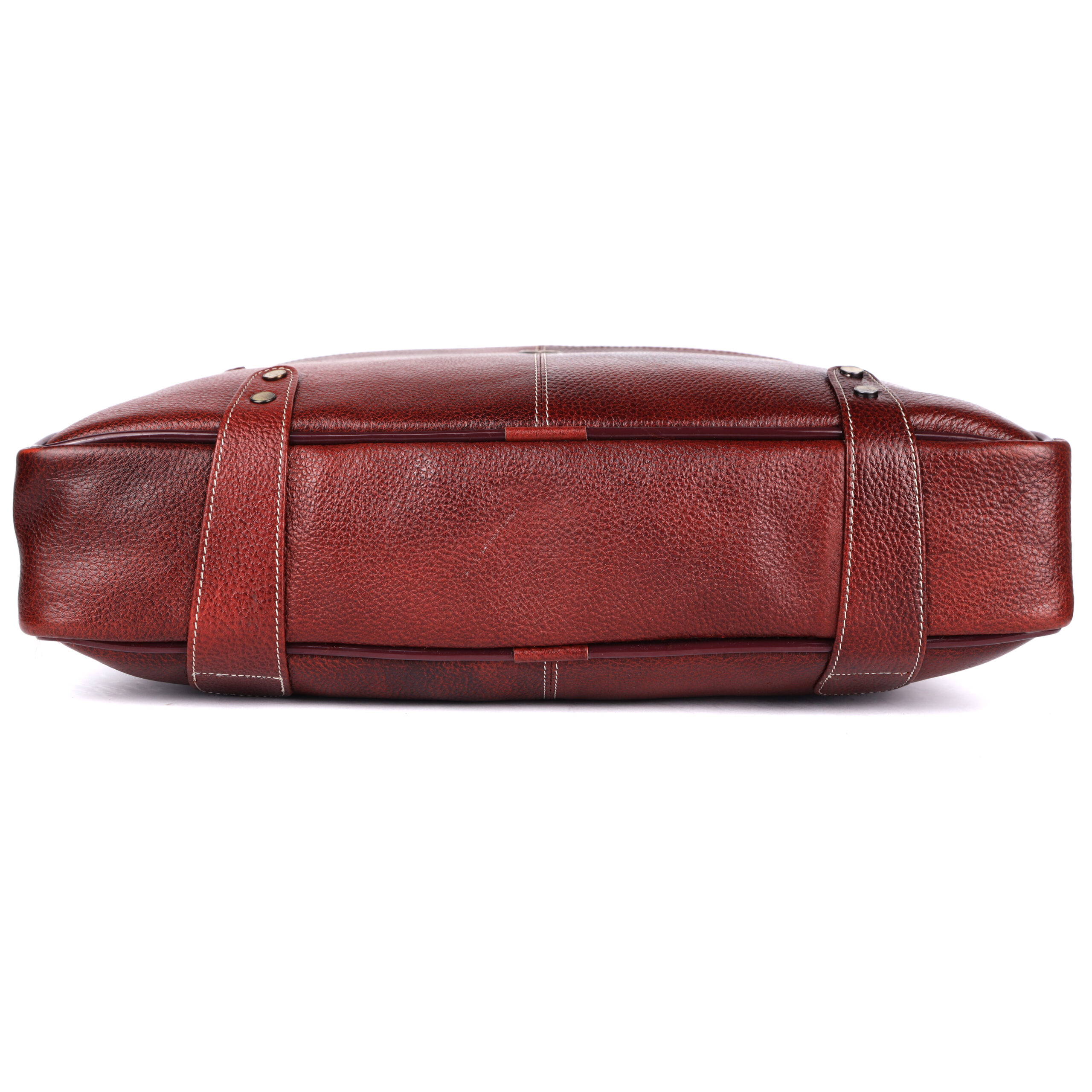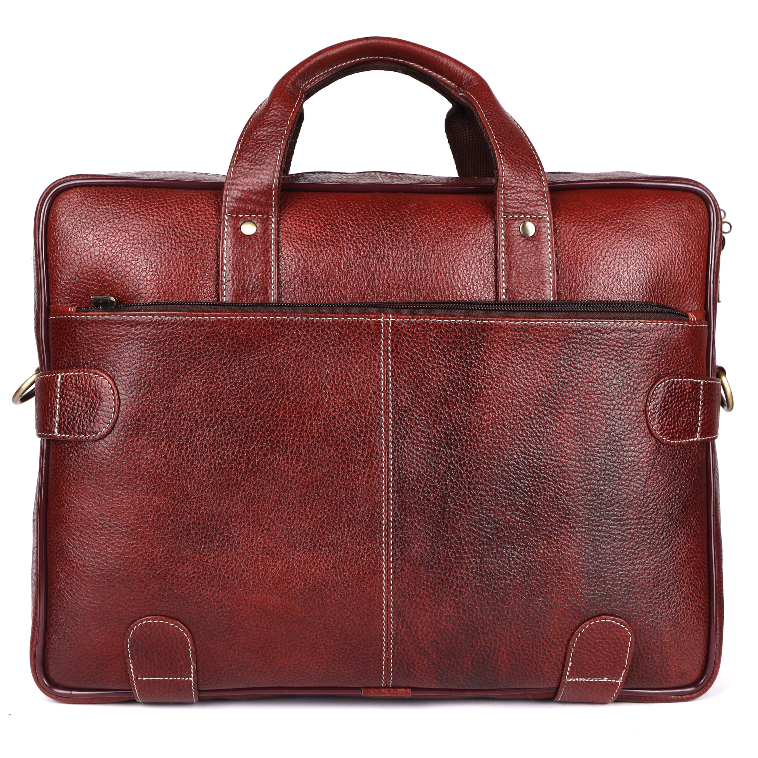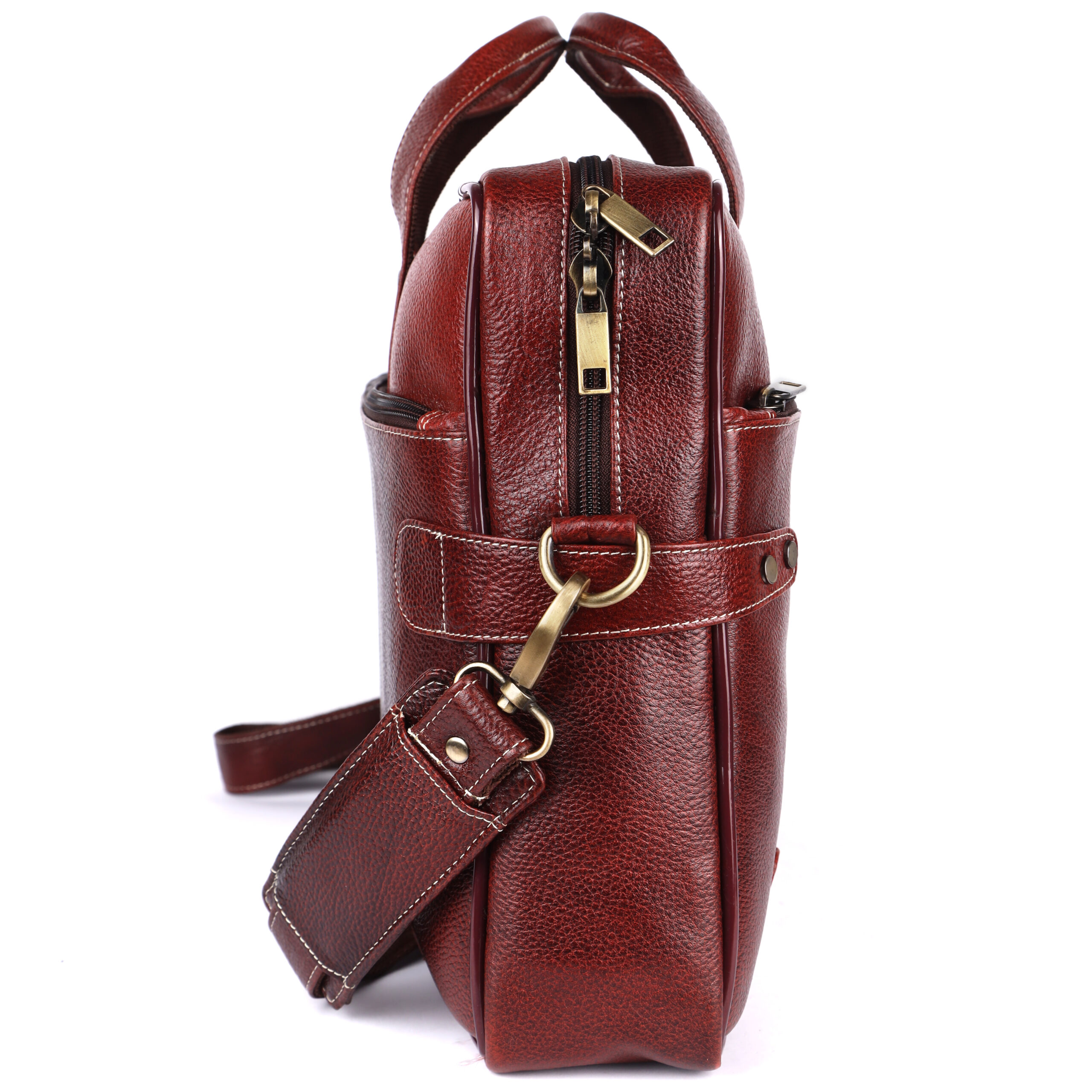 Premium Detailing: Accented with sharp contrast white stitching and robust, polished brass-tone hardware, which provides both reliable durability and a striking professional finish.
