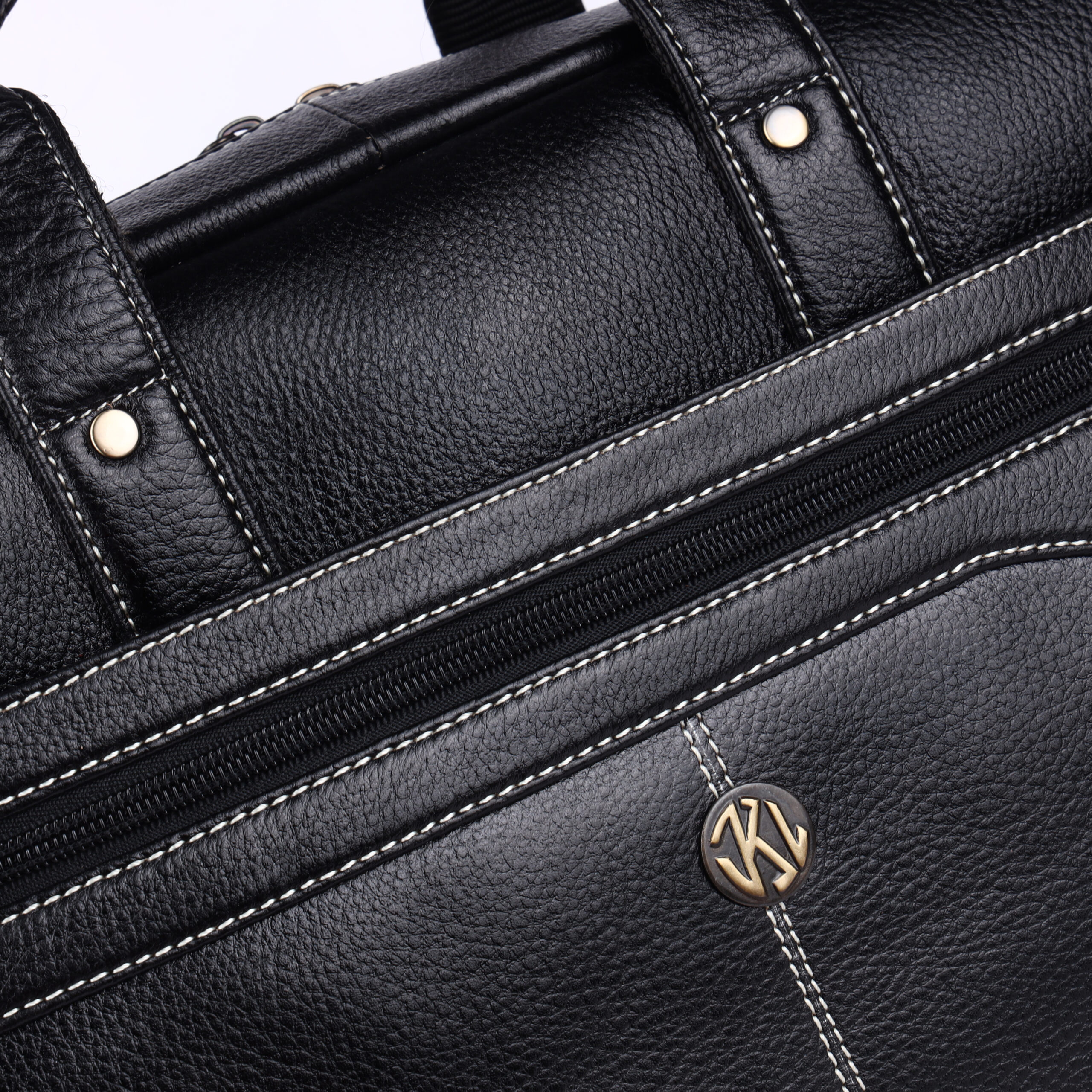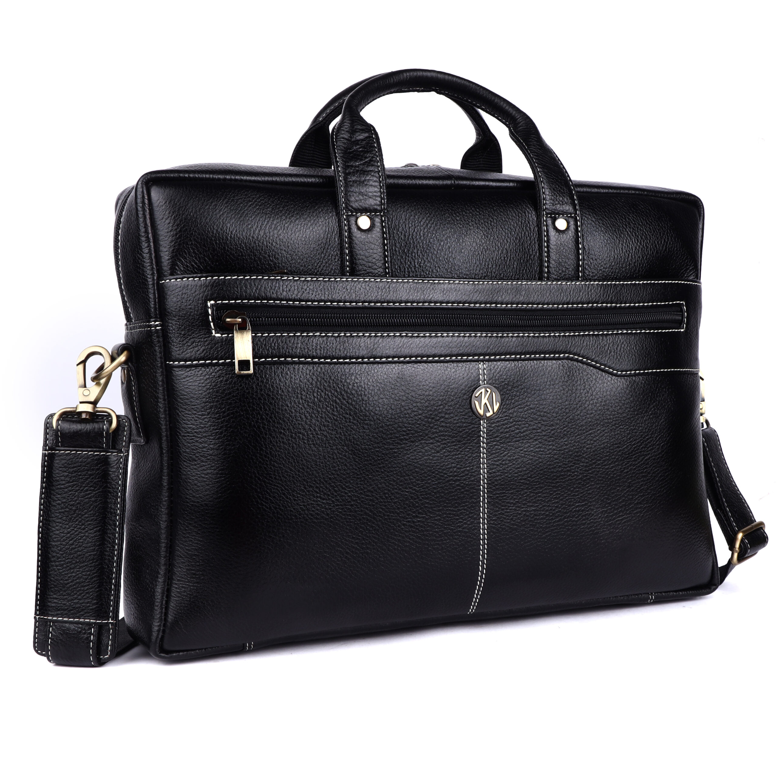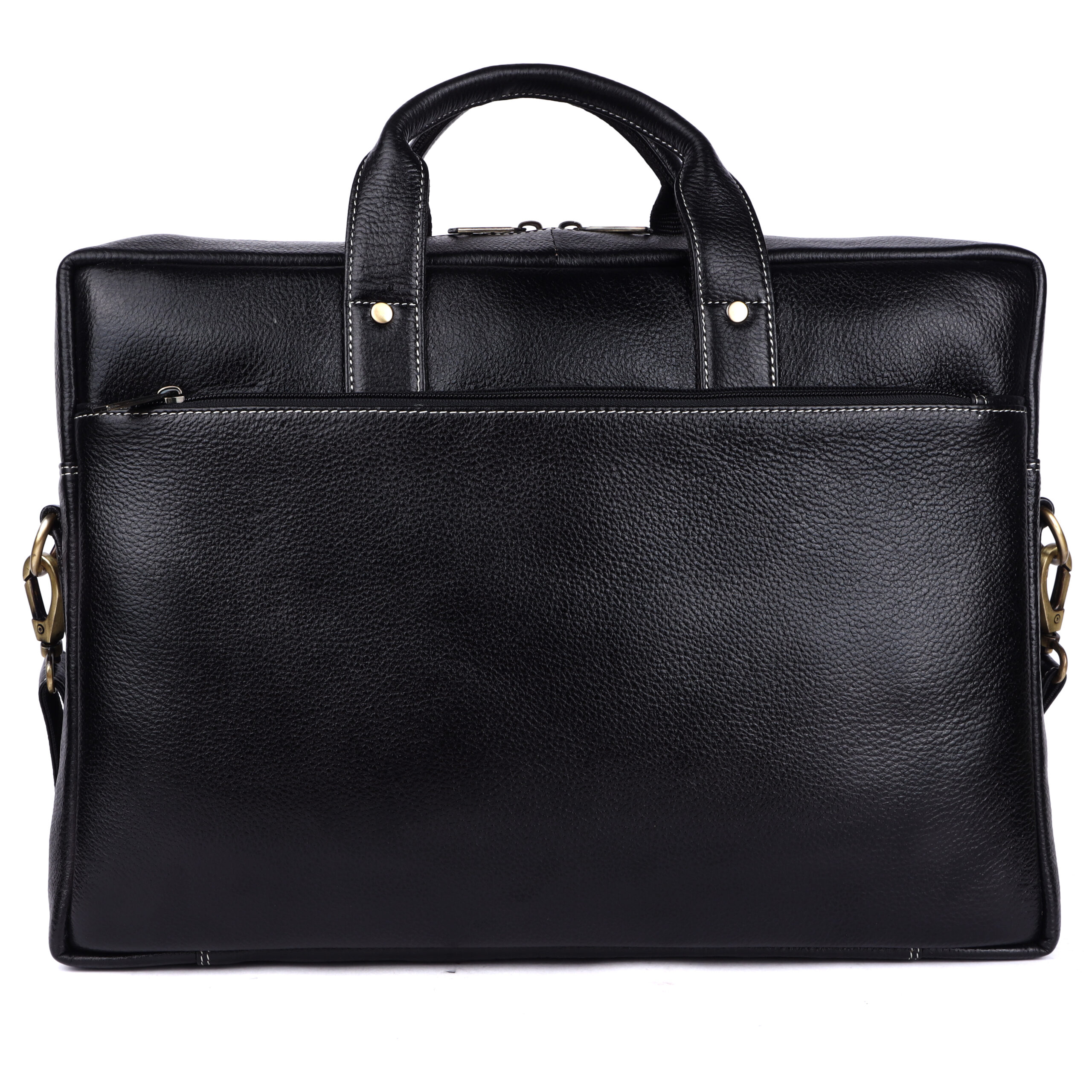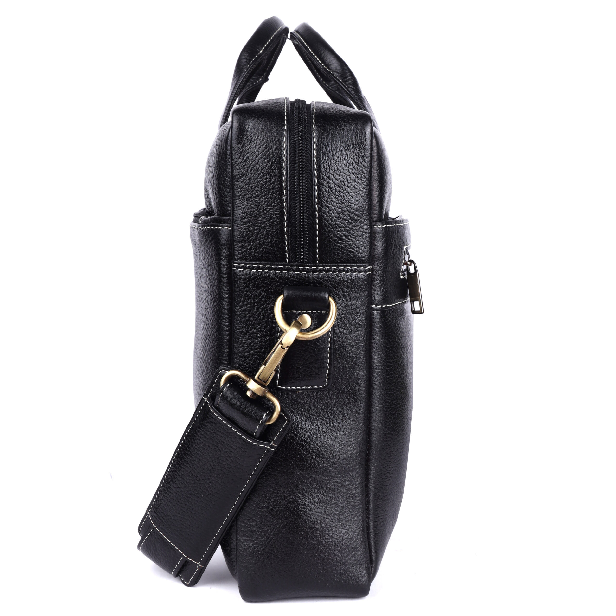 Premium Detailing: Finished with sharp contrast white stitching and robust, polished brass-tone hardware, providing reliable durability and a striking professional finish.