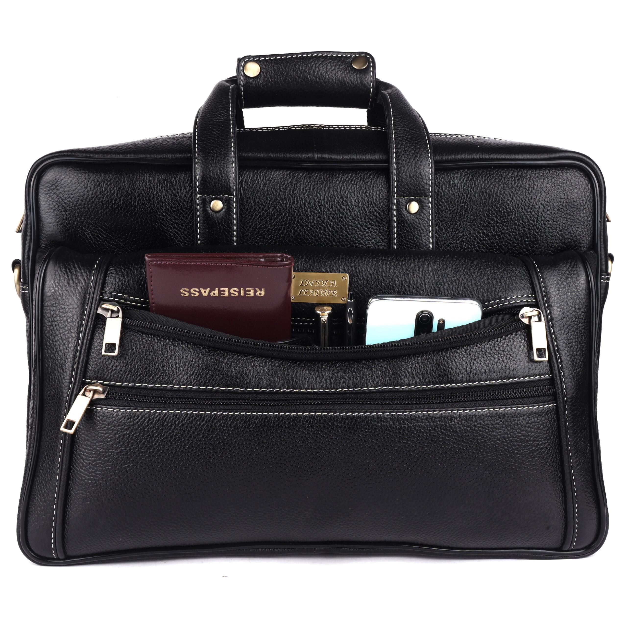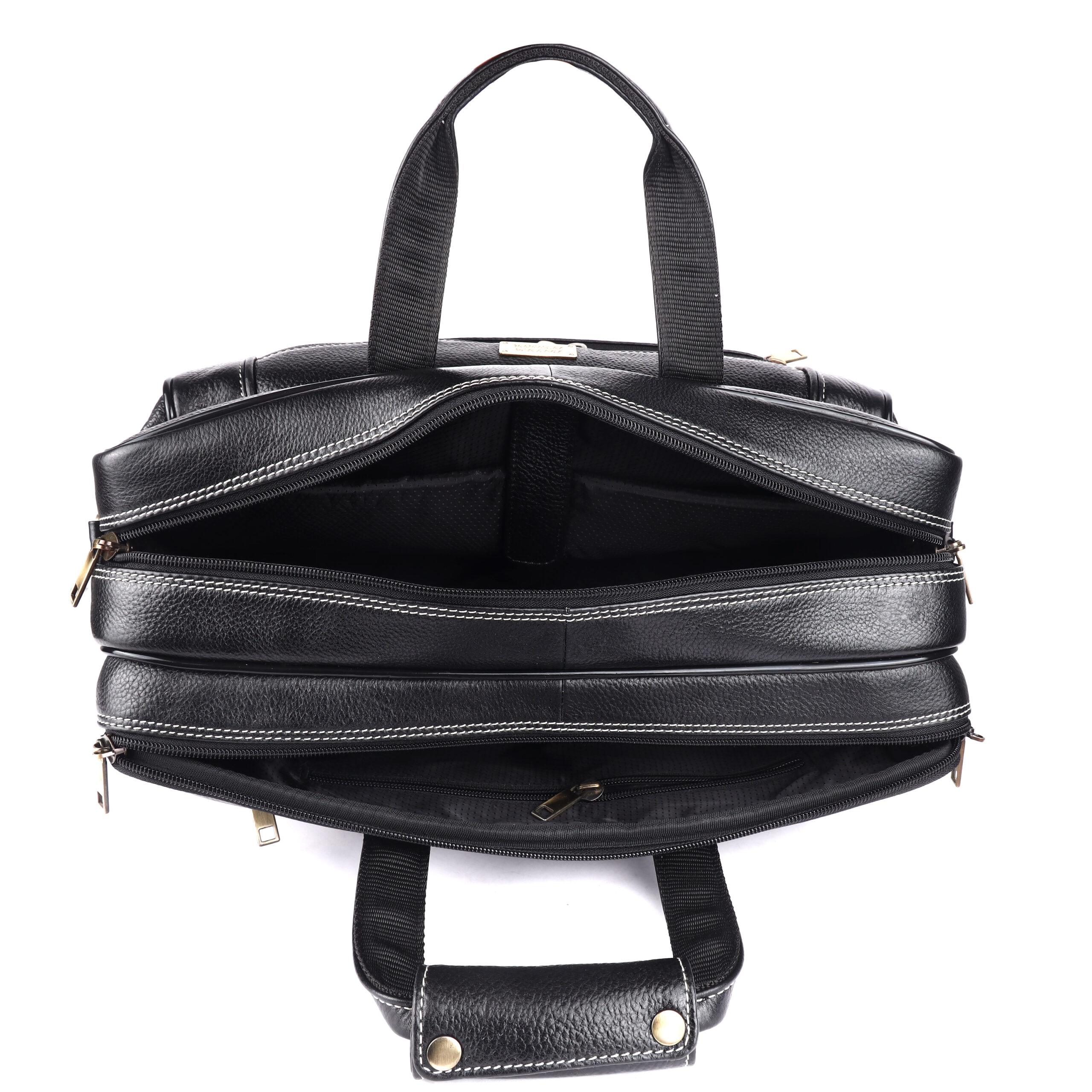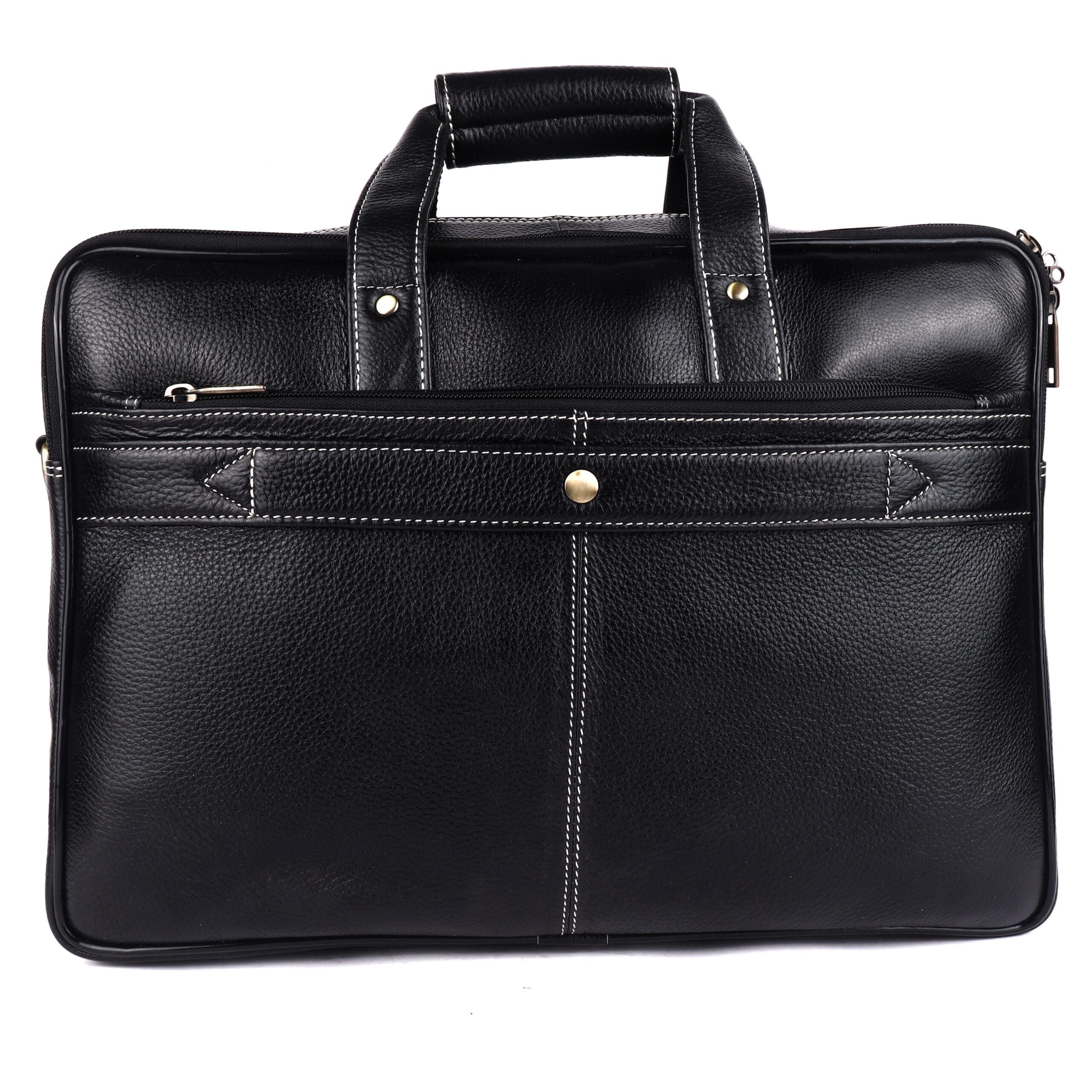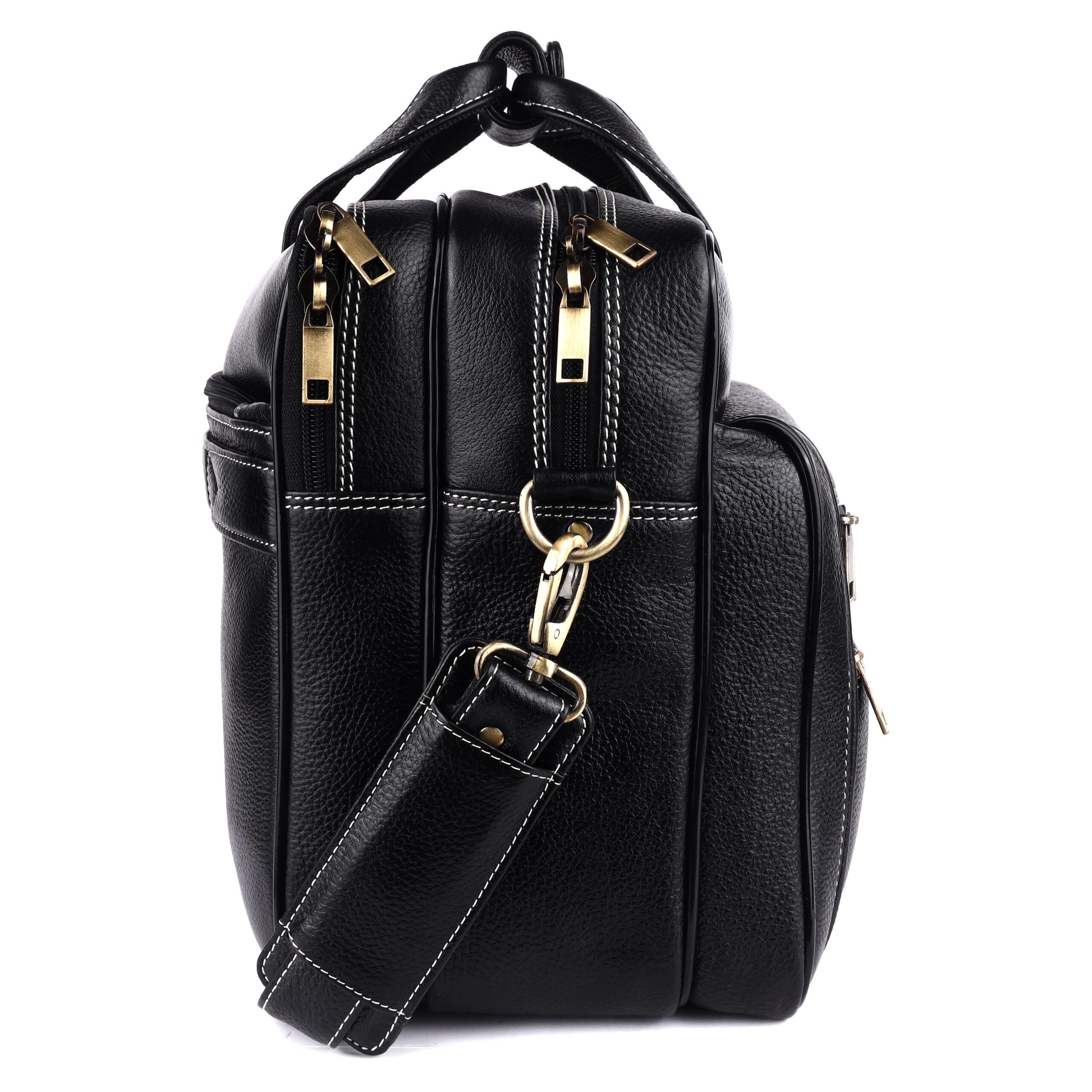 Signature Detailing: The bag features eye-catching contrast white stitching and premium polished brass-tone hardware. These elements combine to create a distinguished, executive look that never goes out of style.